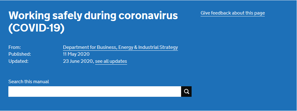 ENGLAND – WORKING SAFELY DURING CORONAVIRUS