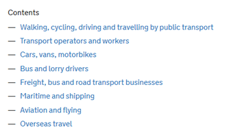 For the latest guidance see: https://www.gov.uk/government/collections/coronavirus-covid-19-transport-and-travel-guidance?utm_source=fd5cf8f8-04a0-4b0c-9758-a96daf7c9d3d&utm_medium=email&utm_campaign=govuk-notifications&utm_content=immediate